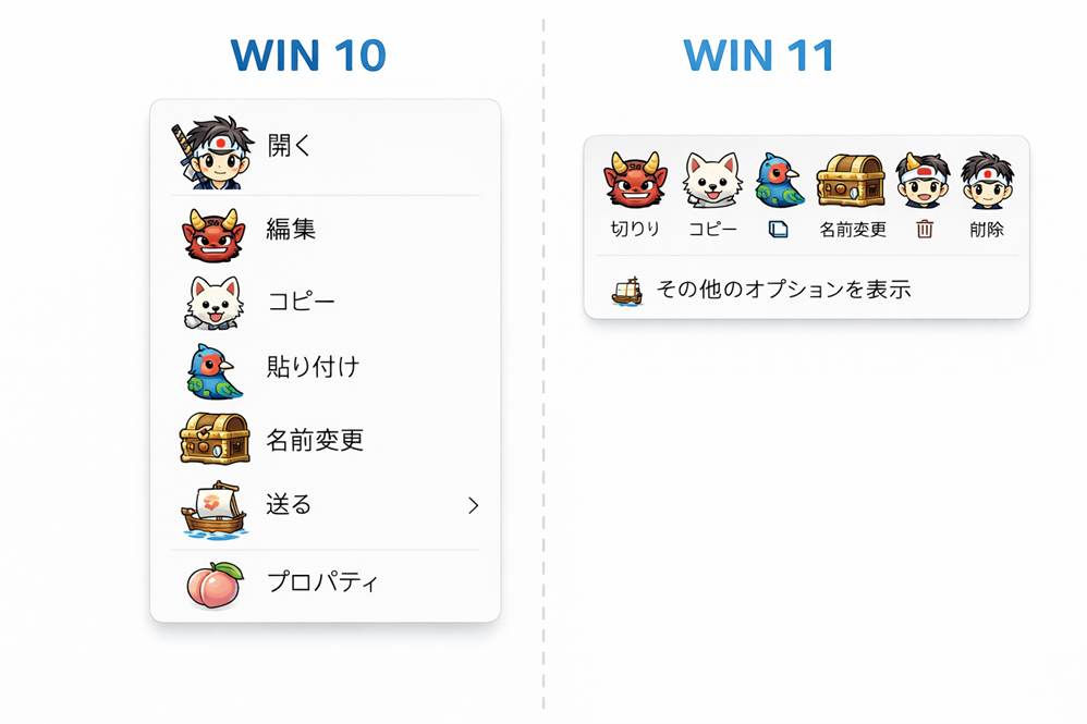 Windows11では、右クリックメニューがモダンなデザインに変わりました。