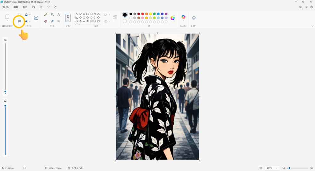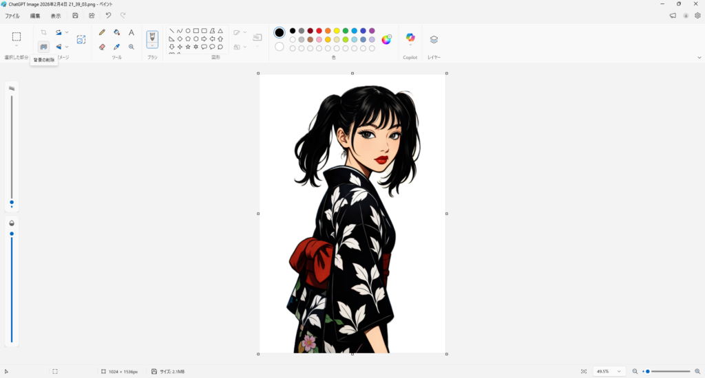 ※ Windows11の最新ペイント(バージョン 11.2304〜あたり)で利用可