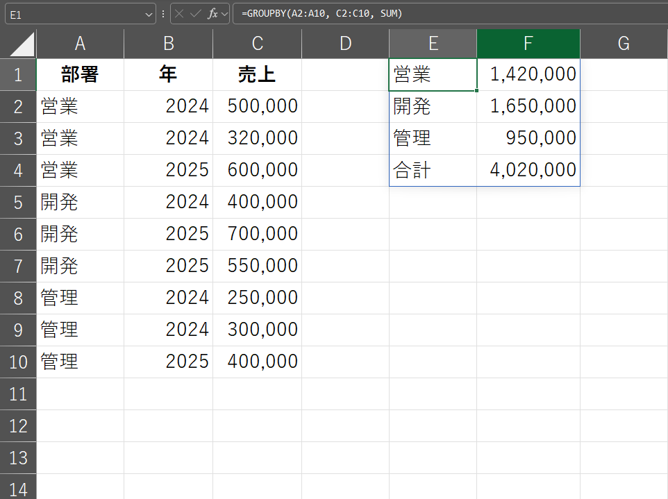 【関数技】Excel GROUPBY関数の基本——数式だけで動的な集計表を作る「SUM」編