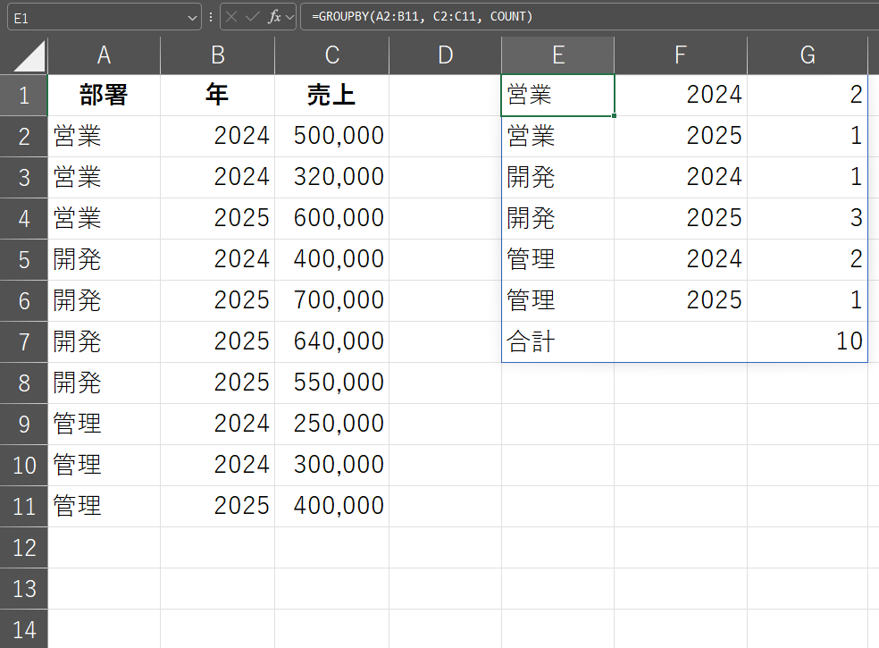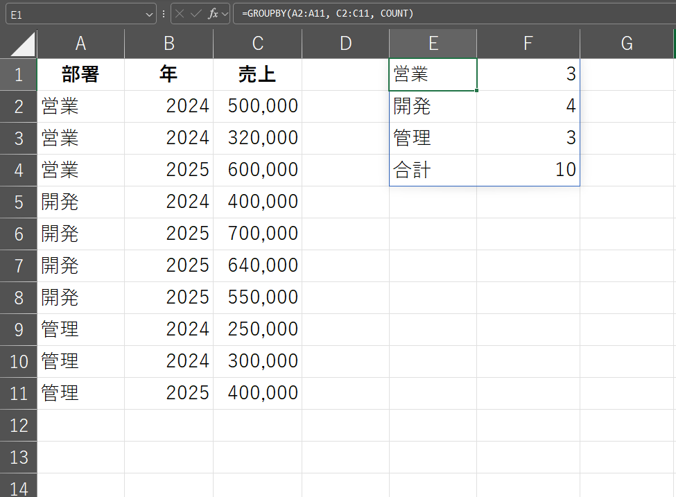 【関数技】Excel GROUPBY関数の基本——数式だけで動的な集計表を作る「COUNT」編