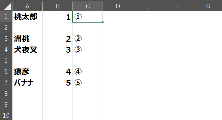 ★ 応用①:丸数字(①②③…)で通番を振る: