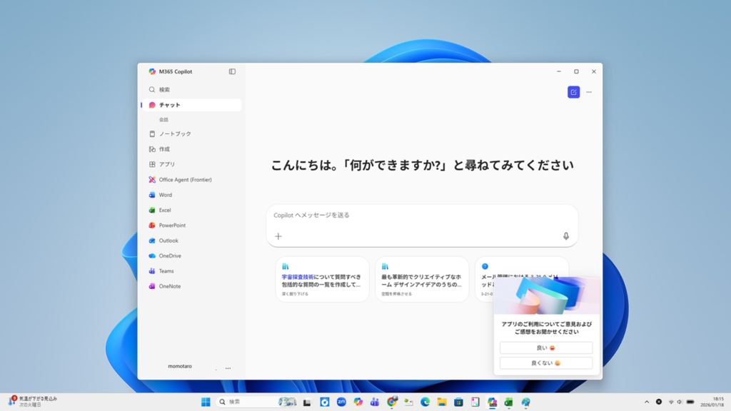 Microsoft 365 ポータル画面(M365 Home)が一瞬で開きます。