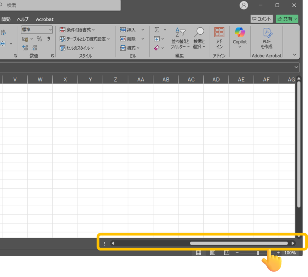 横に長い表を見るとき、右下のスクロールバーをドラッグが地味に面倒くさい。