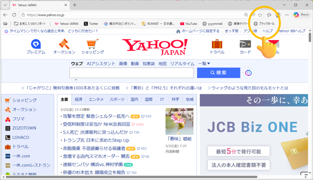 たとえば、Yahooページでお気に入りをクリックすると…