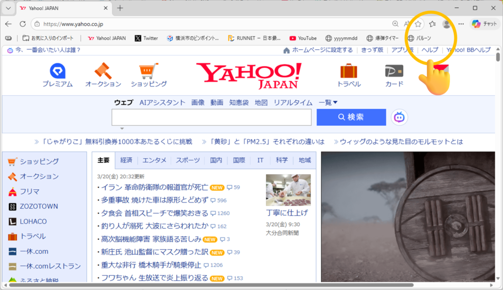 たとえば、Yahooページでお気に入りをクリックすると…